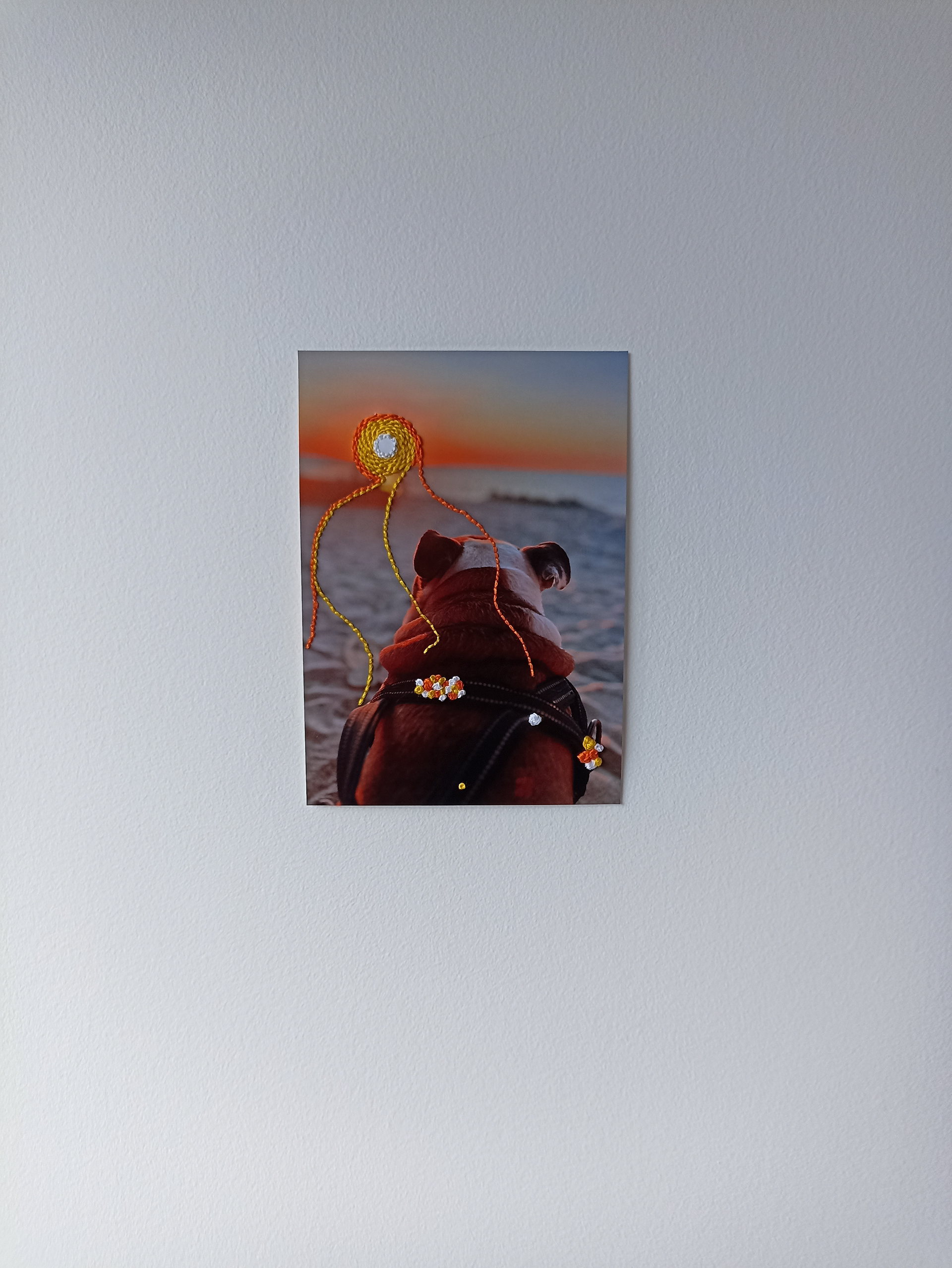 2025. Photo embroidery, 18 x 12.5 cm. Photography by pet owner.